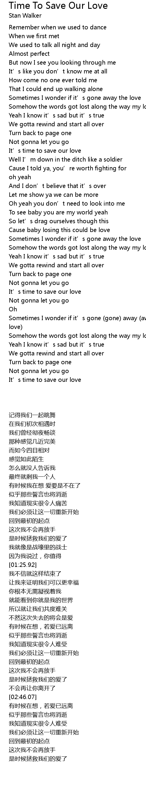 | [02:25.99] | 是时候拯救我们的爱了 |