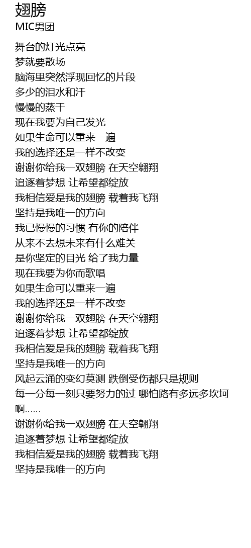 [01:09.000] 我相信爱是我的翅膀 载着我飞翔 坚持是我唯一的方向