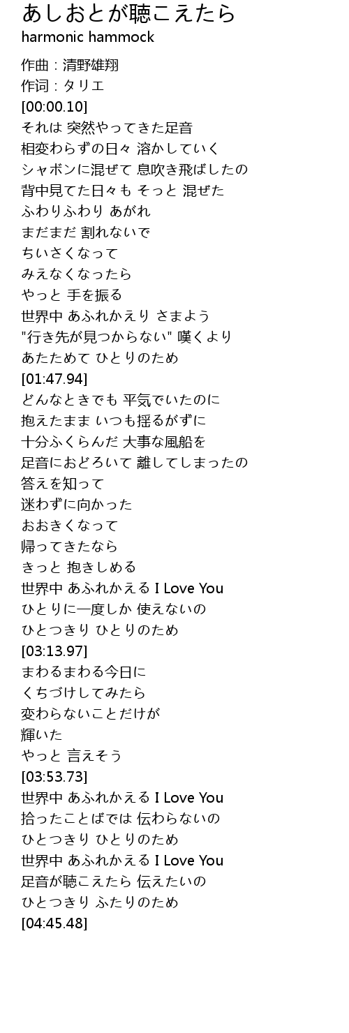 | [03:54.07] | 世界中 あふれかえる I Love You |
