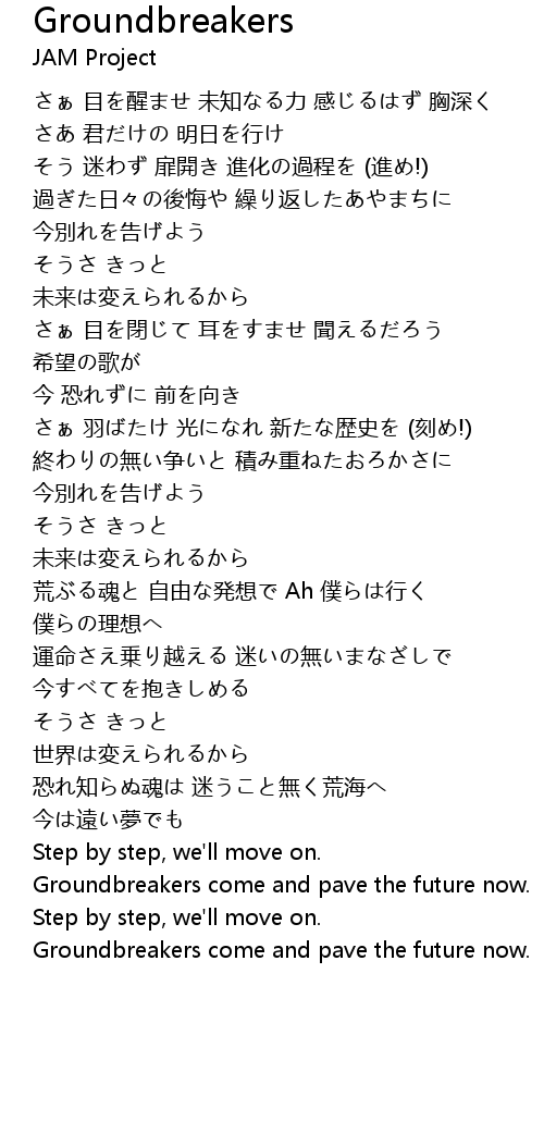 | [07:00.00] | Groundbreakers come and pave the future now. |