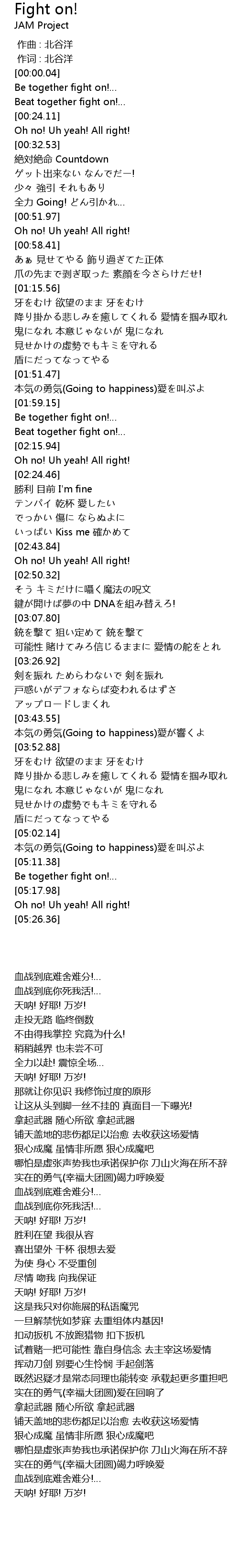 | [02:09.35] | Beat together fight on!… |