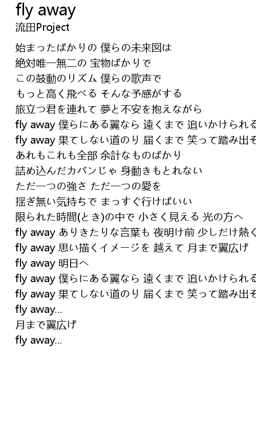 | fly away 僕らにある翼なら 遠くまで 追いかけられるはずさ | |