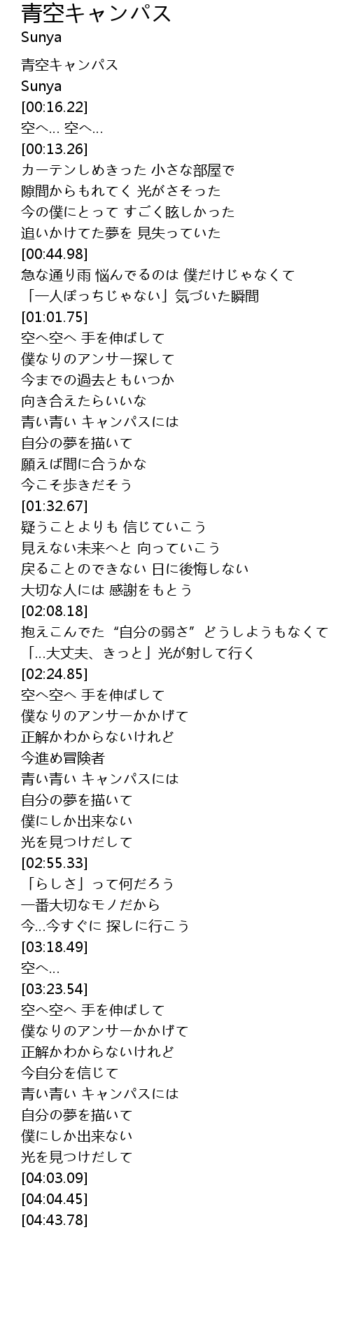 | [00:13.84] | 青空キャンパス |