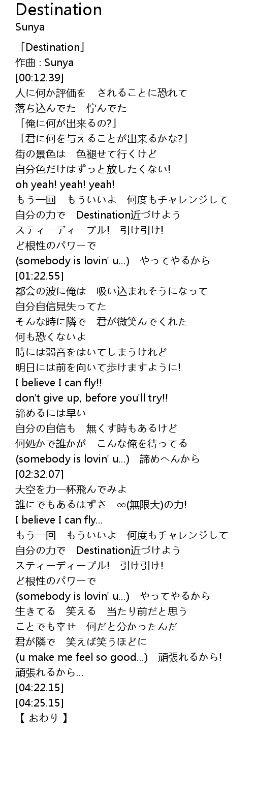 | [00:01.39] | 「Destination」 |