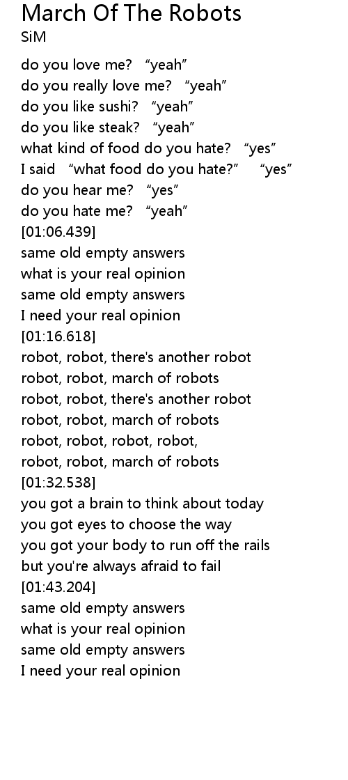 | [01:29.948] | robot, robot, march of robots |