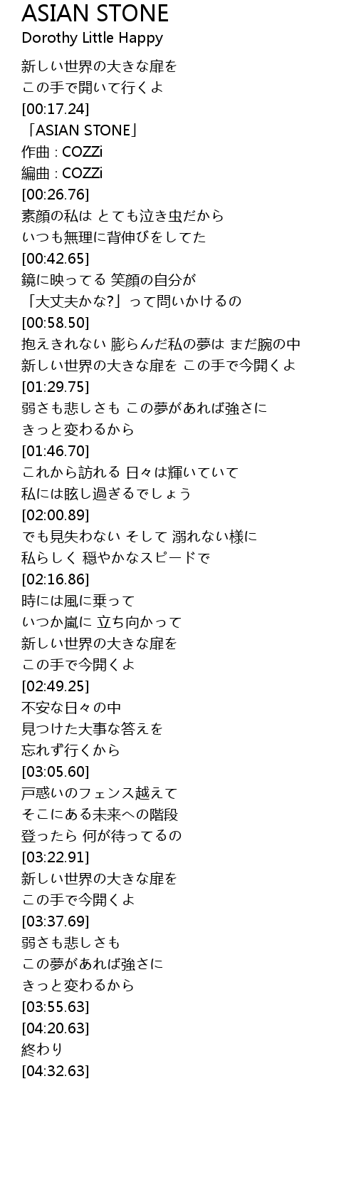| [02:03.17] | でも見失わない そして 溺れない様に |
