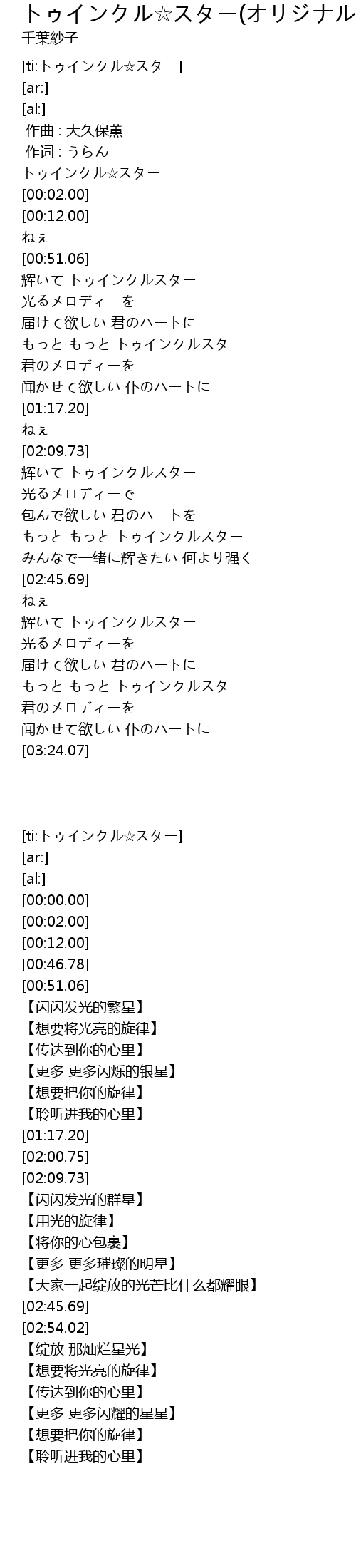 [ti:トゥインクル☆スター] |