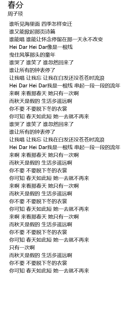 | [02:25.990] | Hei Dar Hei Dar我是一根线 串起一段一段的流年 |