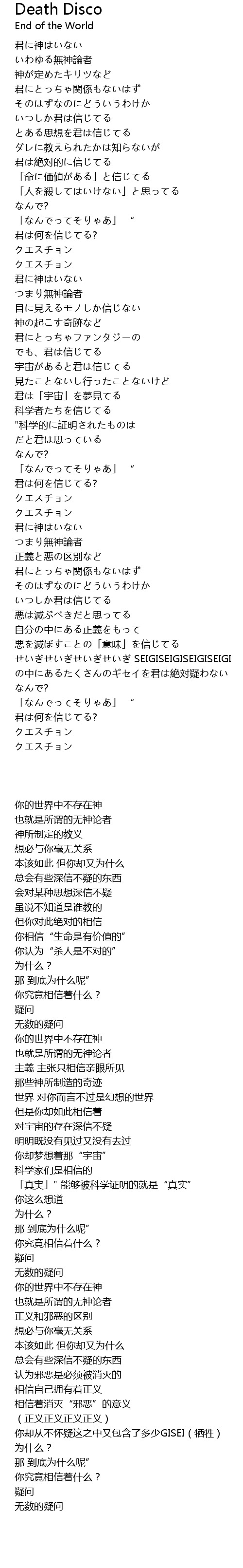 | 歌曲 | Death Disco |