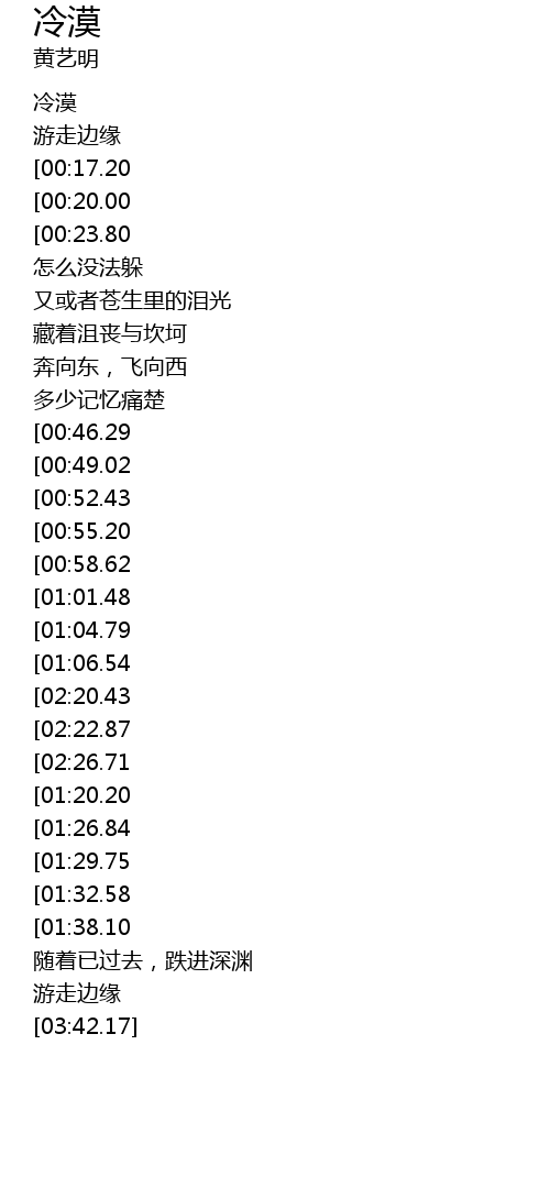 | [02:47.86][01:38.10] | 受尽冷漠 |