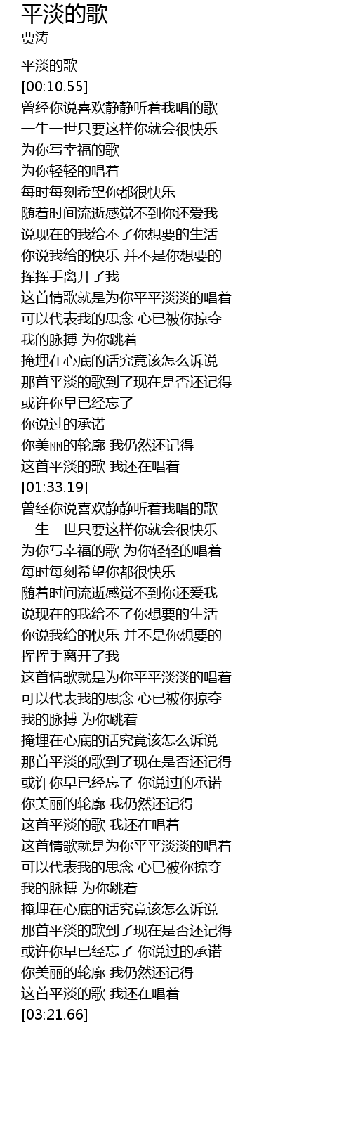 | [00:49.89] | 这首情歌就是为你平平淡淡的唱着 |