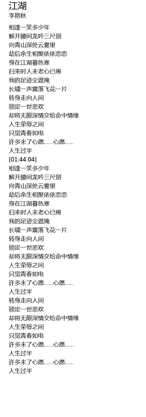 | [00:45.17] | jié hòu yú shēng xiàng jù yī yī liàn liàn |