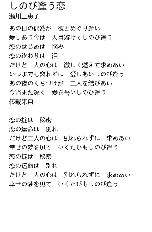 | 歌曲 | しのび逢う恋 |
