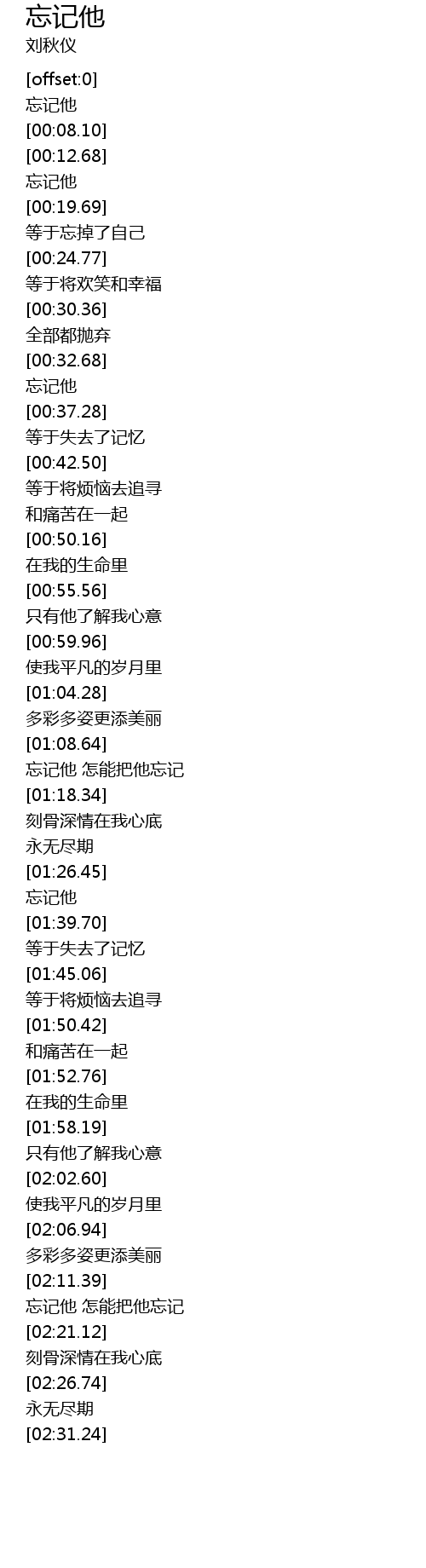 | [00:17.86] | 忘记他 |