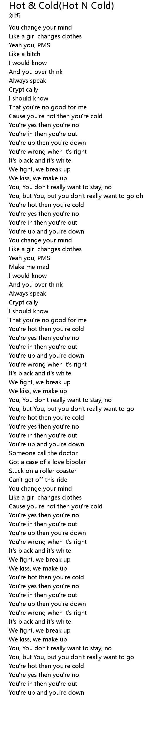 | [00:54.36] | You're hot then you're cold |