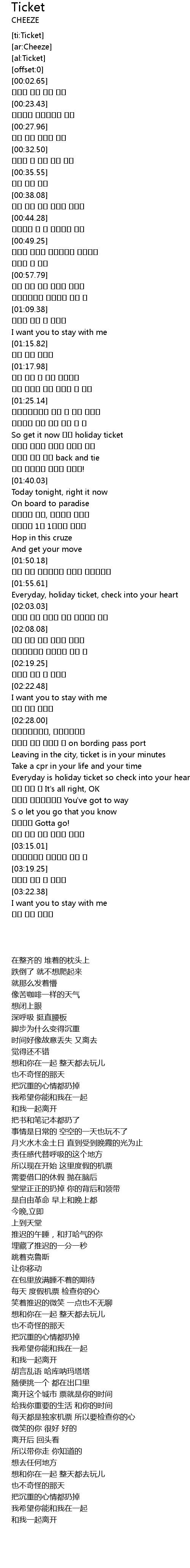 | [03:00.48] | Everyday is holiday ticket so check into your heart |