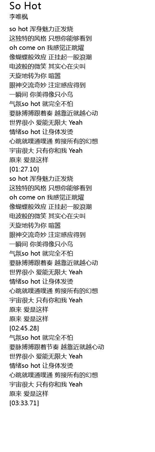 | [01:31.24] | so hot 浑身魅力正发烧 |