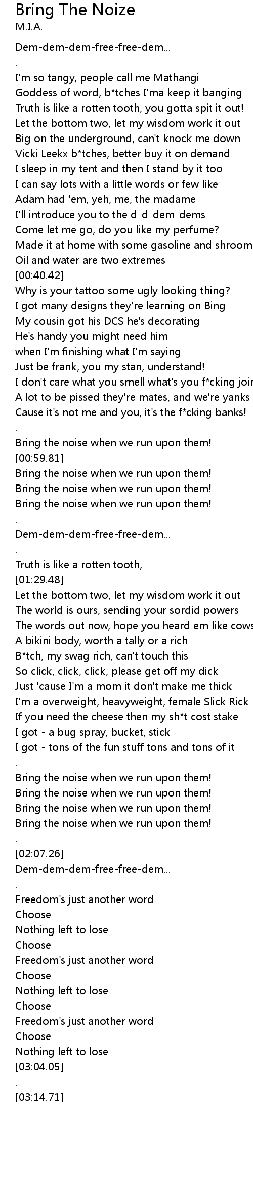 | [01:13.24] | Dem-dem-dem-free-free-dem... |
