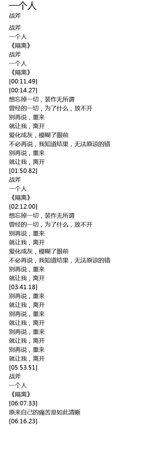 | [06:01.81] | 一个人 |