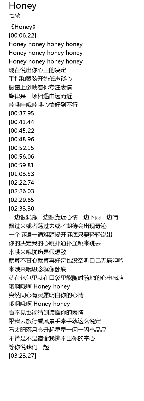 | [03:07.57][02:22.74][01:07.52] | Honey honey honey honey |