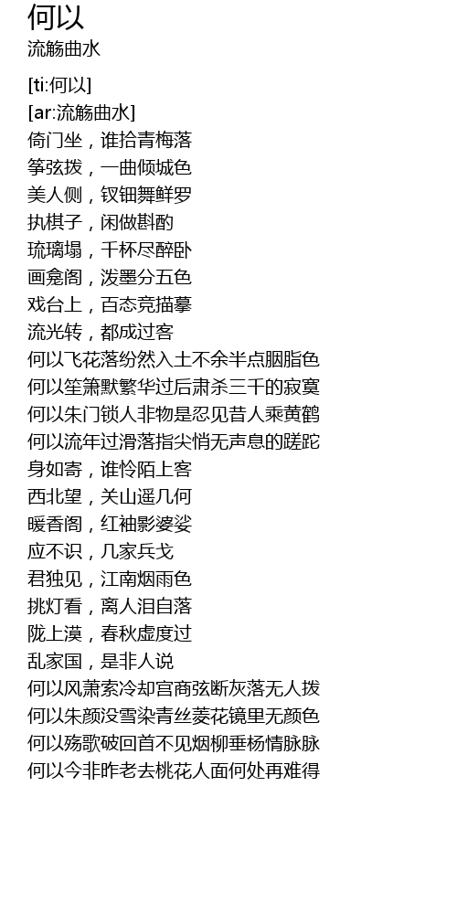 | [01:17.741] | 何以朱门锁人非物是忍见昔人乘黄鹤 |