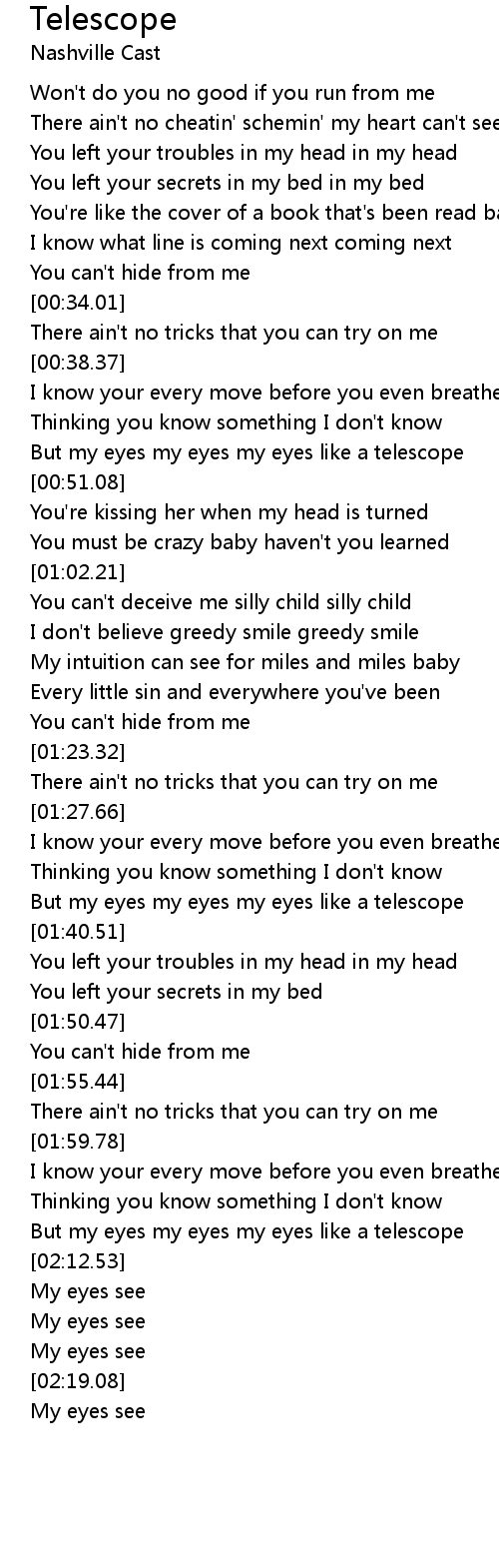But my eyes my eyes my eyes like a telescope |