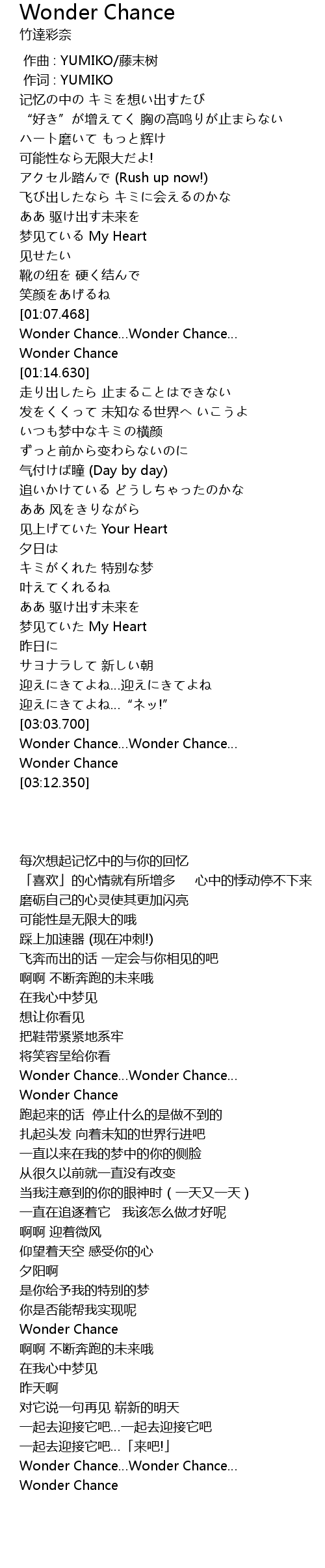 | [03:05.328] | Wonder Chance…Wonder Chance… |