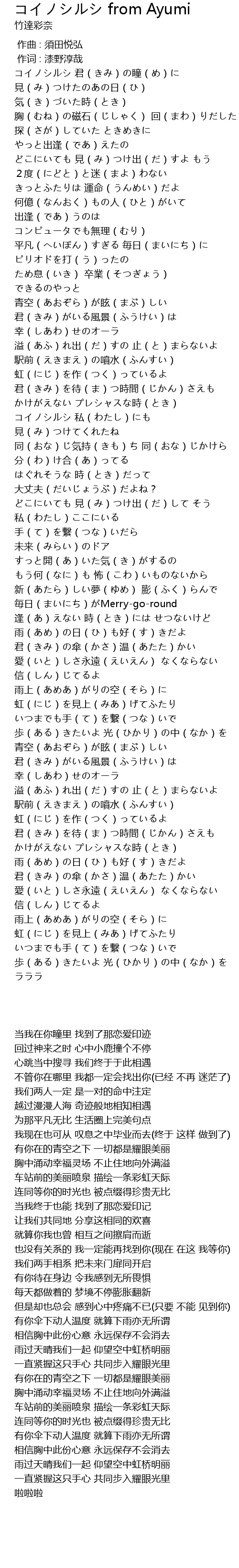 | [00:15.110] | コイノシルシ 君(きみ)の瞳(め)に 見(み)つけたのあの日(ひ) |