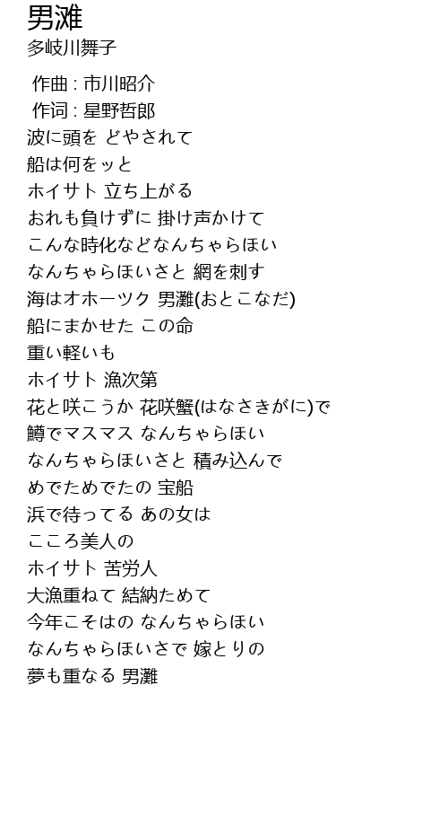 | [01:20.16] | 海はオホーツク 男灘(おとこなだ) |