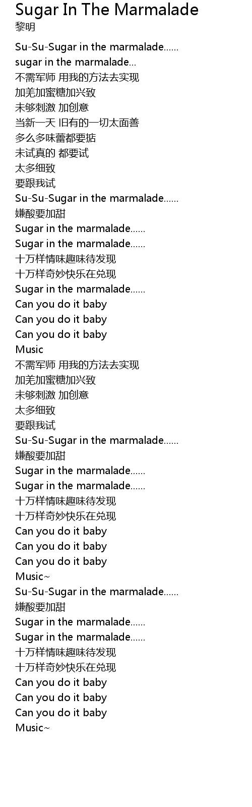 | [01:15.000] | Su-Su-Sugar in the marmalade...... |