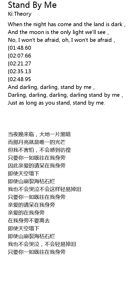 | [00:52.00][01:48.60] | Just as long as you stand, stand by me, |