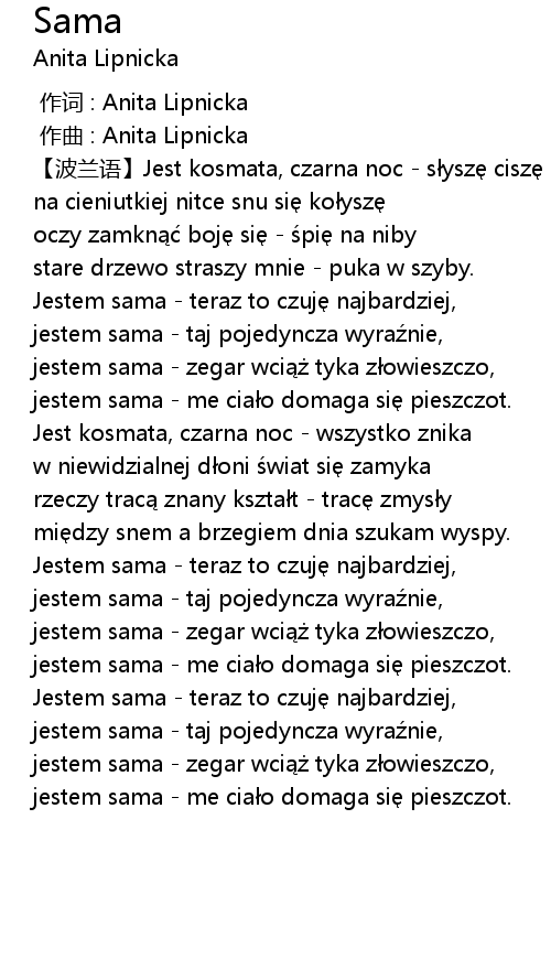 | [00:00.000] | zuò cí : Anita Lipnicka |