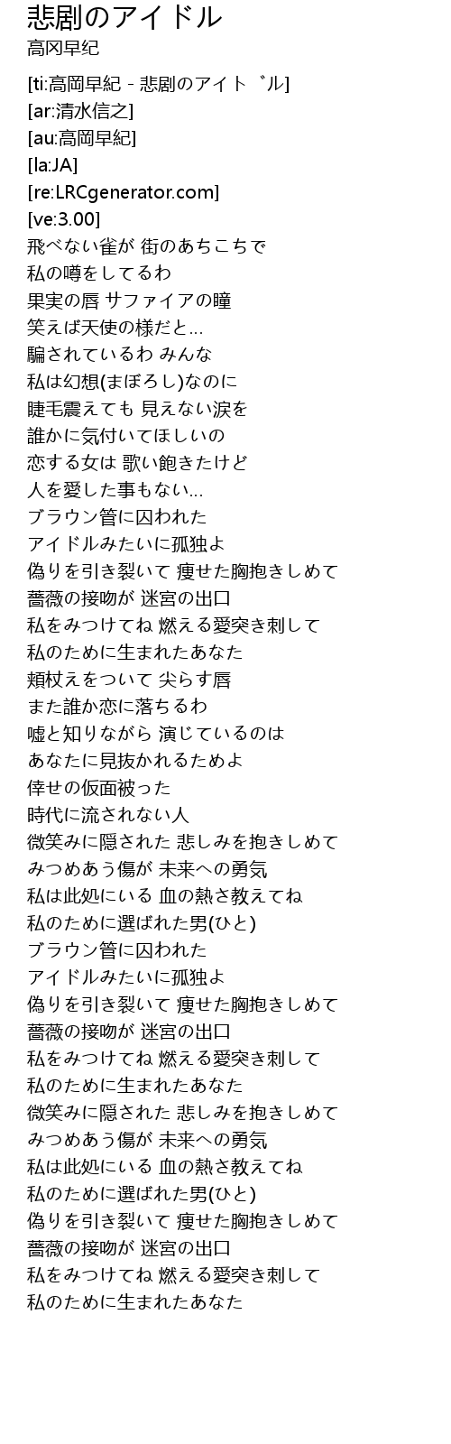 | [ti:高岡早紀 - 悲剧のアイドル] | |
