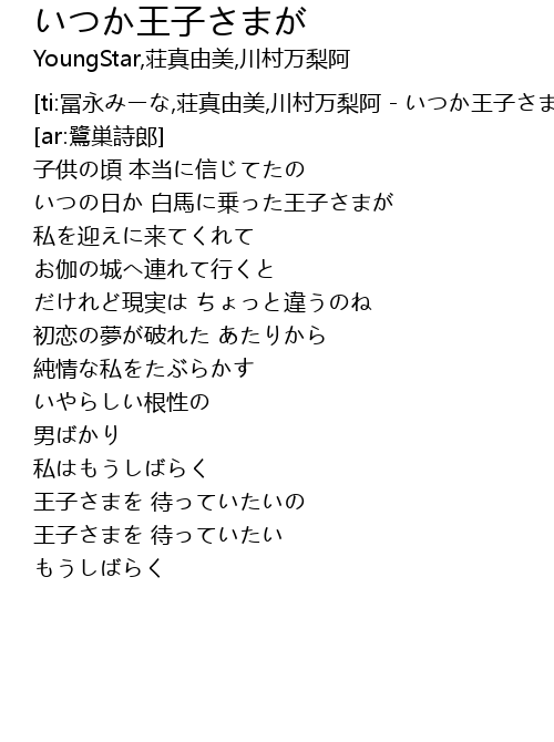 | [00:22.080] | いつの日か 白馬に乗った王子さまが |