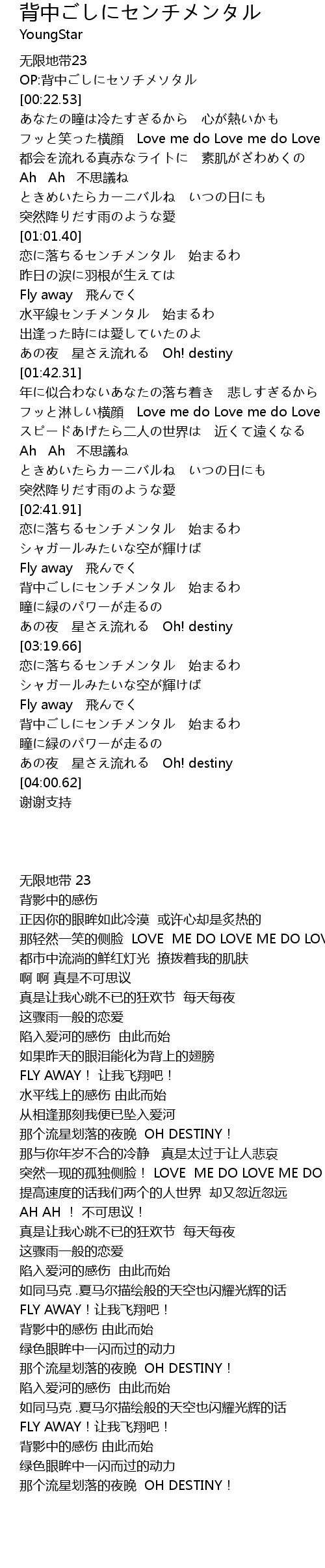 | [02:58.50] | 背中ごしにセンチメンタル 始まるわ |