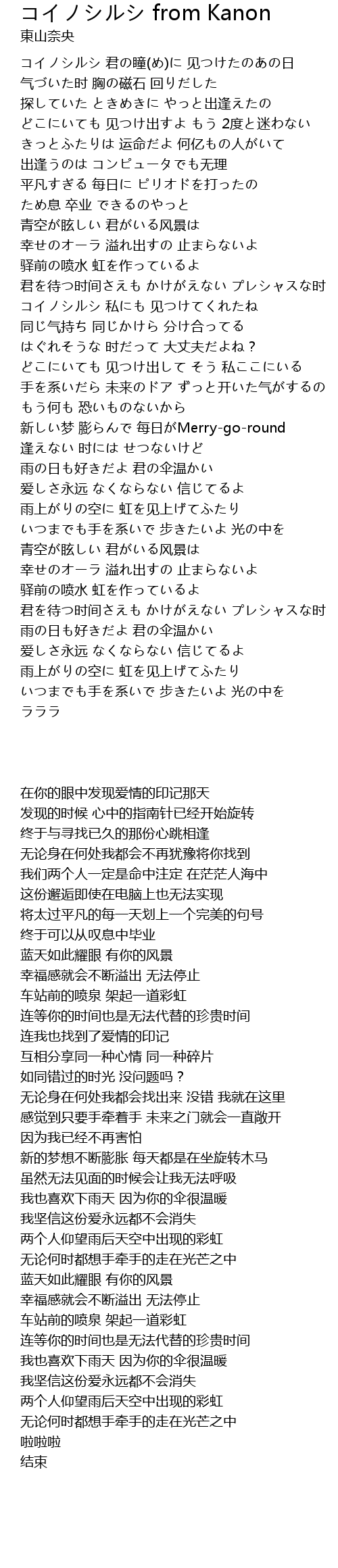 | [00:14.409] | コイノシルシ 君の瞳(め)に 见つけたのあの日 |
