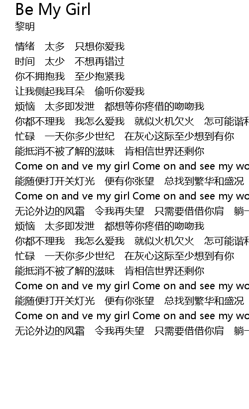 | [02:52.80] | Come on and ve my girl Come on and see my world |