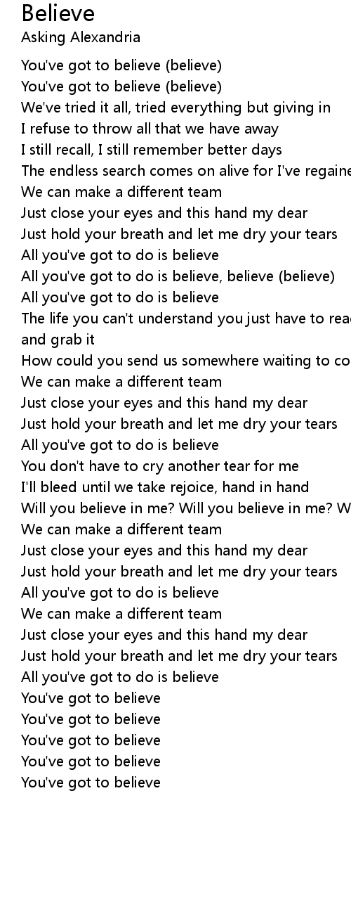 All you've got to do is believe |