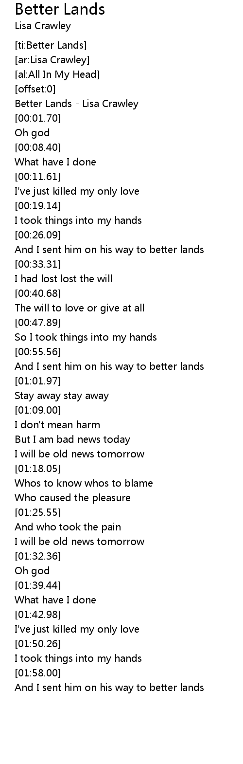 [00:00.62] Better Lands - Lisa Crawley