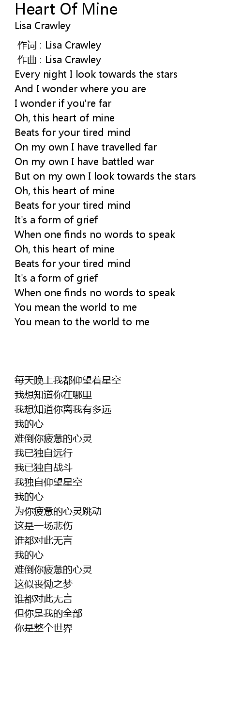 | [00:00.000] | zuò cí : Lisa Crawley |