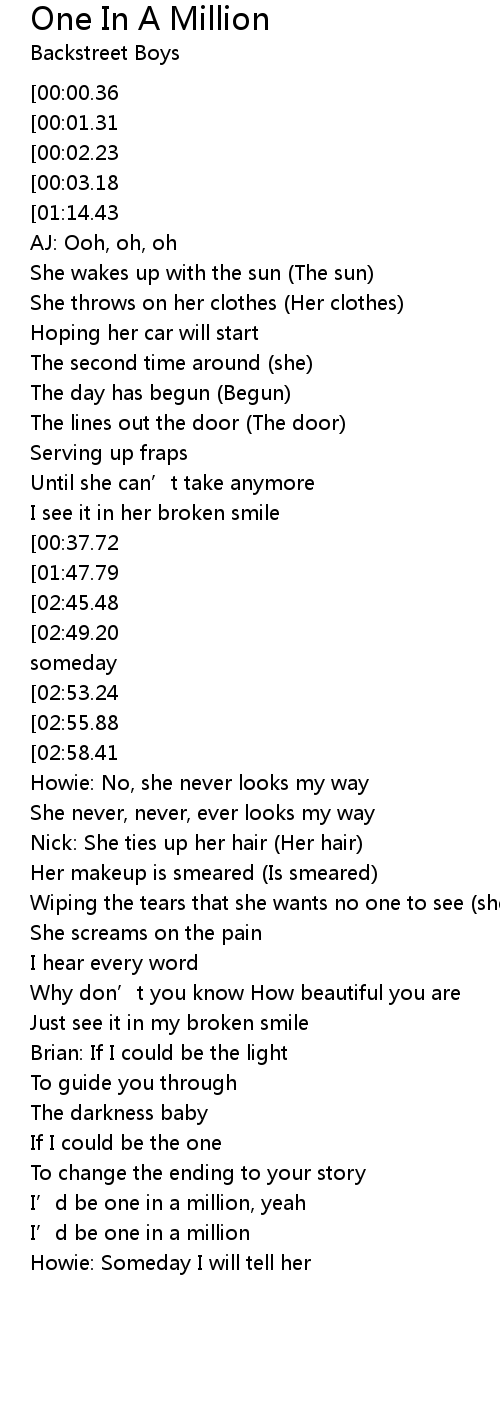 | [03:28.74][00:00.36] | Title: One In A Million |