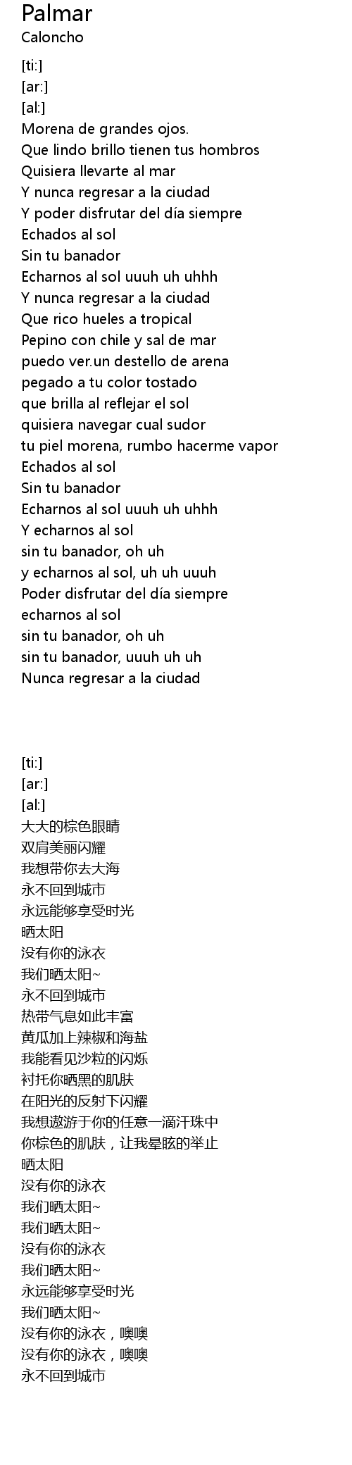 | [02:16.52] | Echarnos al sol uuuh uh uhhh |
