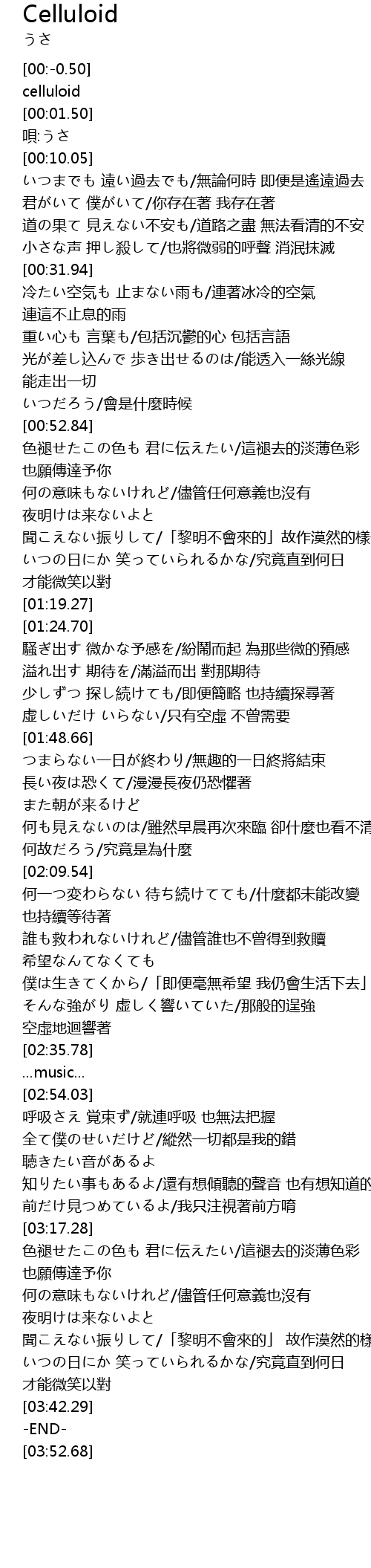 | [01:54.44] | 長い夜は恐くて/漫漫長夜仍恐懼著 |