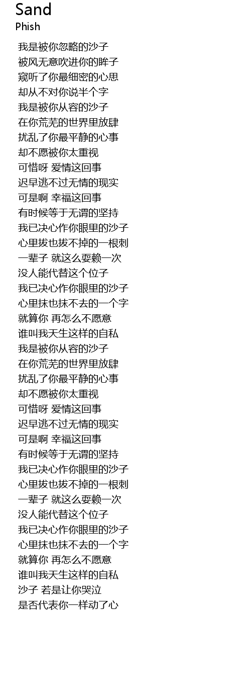 | wǒ shì bèi nǐ cóng róng de shā zi | |
