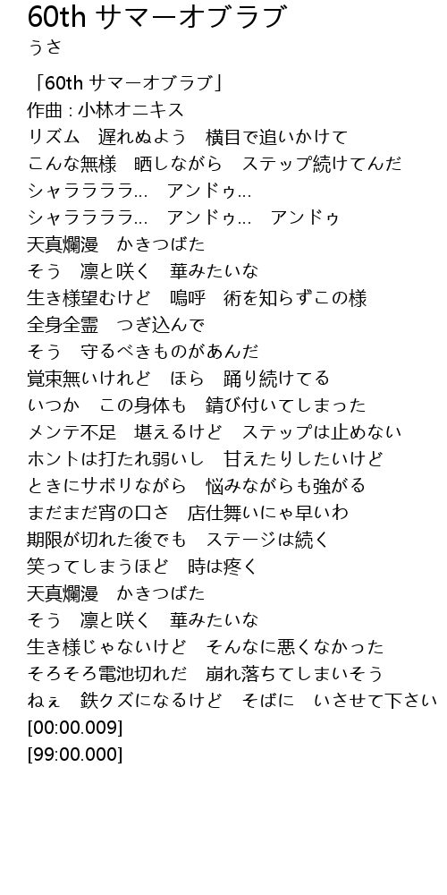 | [00:01.19] | 「60th サマーオブラブ」 |