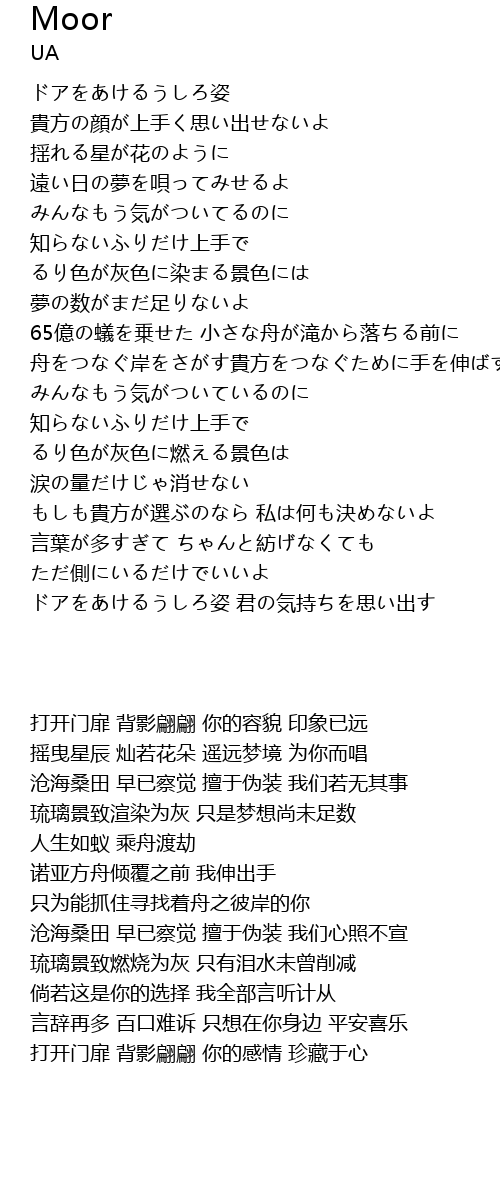 | [00:45.490] | 揺れる星が花のように 遠い日の夢を唄ってみせるよ |