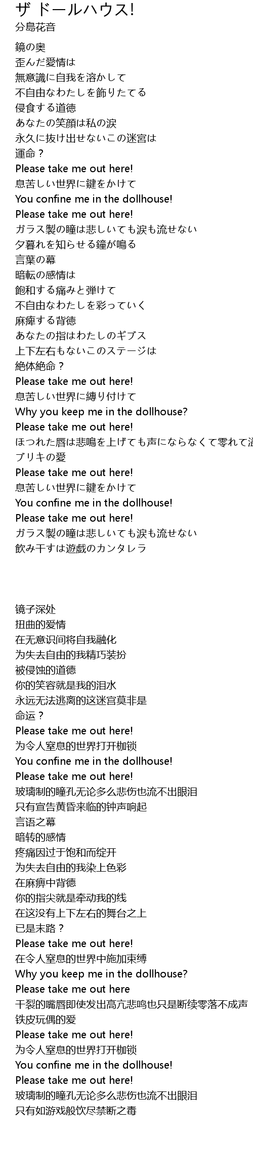 | [02:33.500] | You confine me in the dollhouse! |