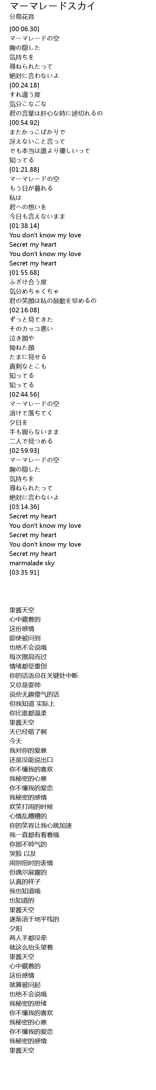 | [03:00.45] | マーマレードの空 |