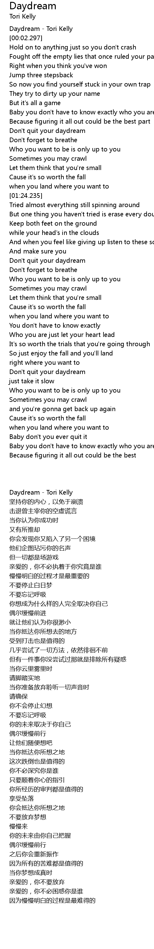 Daydream - Tori Kelly |