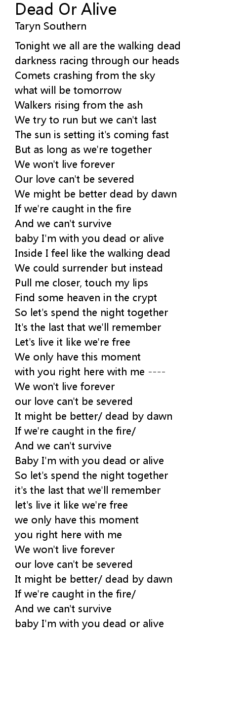 baby I'm with you dead or alive |